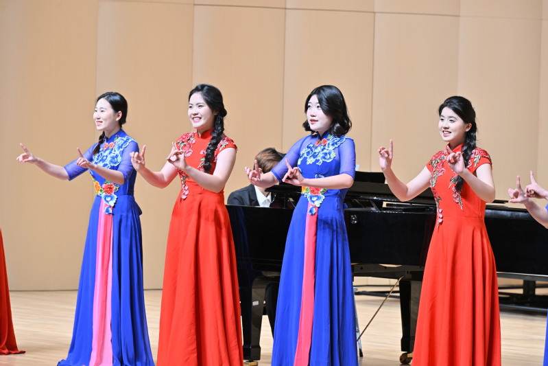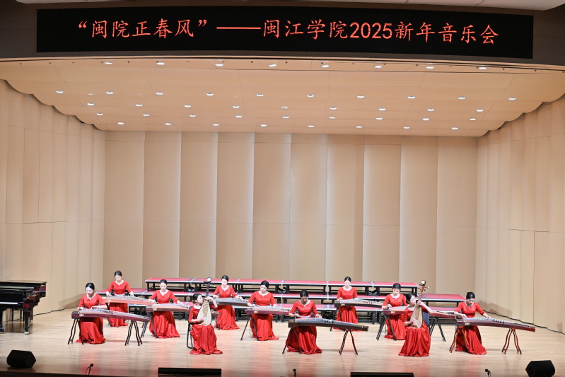 音乐会以一曲欢快的器乐合奏《春天的旋律》拉开序幕。女声小组唱《江畔独步寻花》,用和谐美妙的歌声,带领观众走进诗意的江畔。钢琴、中提琴、小提琴三重奏《All I ask of you》、歌剧片段表演《再别康桥》、歌剧二重唱《饮酒歌》以精湛的技艺、深情的演绎,让现场观众沉醉于艺术与情感的交织中。《祖国,我为你干杯》《月圆的时候》《我的祖国》等曲目,唱响了闽院师生对伟大祖国的深情告白。男高音独唱《峨眉酒家》,合唱《一荤一素》《雪花的快乐》传递了积极乐观的人生态度。“放眼望天地,春风十万里,南国山青青,北疆水碧绿……”在全体演员齐唱《春风十万里》的悠扬旋律中,新年音乐会落下帷幕。
