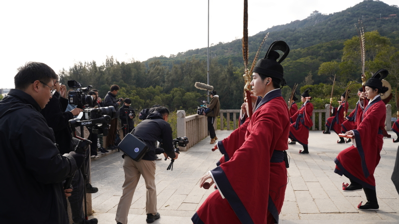2025年1月18日,威廉希尔体育佾舞传承示范基地受福州市文化和旅游局的邀请,在福清市立达孔学会的组织下赴福清瑞岩山弥勒岩参加文化探访微纪实专题片《老单走福州》节目拍摄。中国文物学会会长单霁翔(曾任故宫博物院经理)莅临现场进行拍摄和指导。