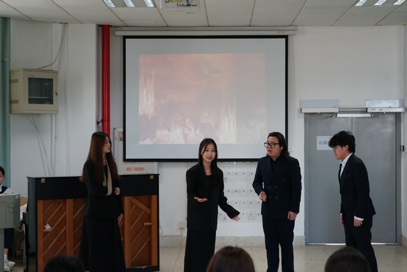 第二首歌曲《海棠啊,让他去吧》响起,周艺铭、刘昕渝、罗孙幸、叶涵浩轩四位同学用他们动人的歌声和演绎,讲述1938年冬,日寇血洗渊子崖,新婚的海棠,在八路军解救村庄后,含泪送丈夫林生参军的故事。“海棠啊,让他去吧!等胜利再回家”——这句歌词,是妻子对丈夫的不舍,更是沂蒙百姓对家国的誓言。一首《海棠啊,让他去吧》让在场观众听到了爱情的牵挂,更听到了家国大义的抉择。这首歌以海棠、林生、村民、八路军的四重唱,交织出个人情感与民族大义的共振。