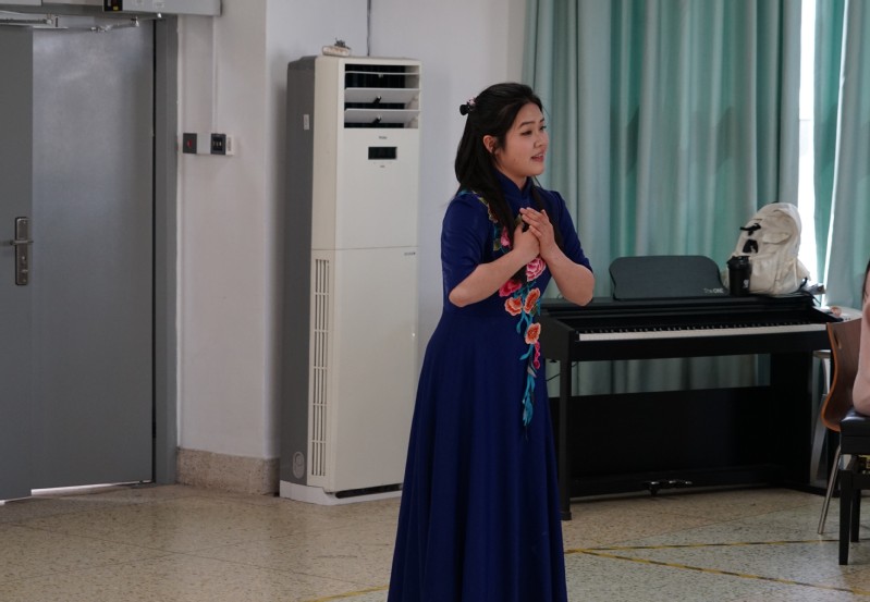 随着钢琴伴奏的轻轻响起,第一首歌曲《绣红旗》缓缓响起,蔡怡婕同学用她清澈而深情的歌声,将大家带入了歌剧《江姐》的感人场景。观众们仿佛置身于1949年10月1日,当时新中国刚刚成立,重庆歌乐山牢房中的革命者们突破封锁,得知了这个好消息。在江姐生命的最后时刻,用筷子磨成竹签做笔,用棉花灰制成墨水,写下了一封托孤遗书,这封信是写给她的表弟谭竹安的。信中,她表达了对儿子彭云深深的思念之情,同时告诫要培养孩子树立远大理想,为建设新中国献身。这不仅是份遗书还是交给后世的接力棒。《绣红旗》表达了中华儿女热爱党、热爱祖国的一片红心,以及对新中国成立的渴望与向往。