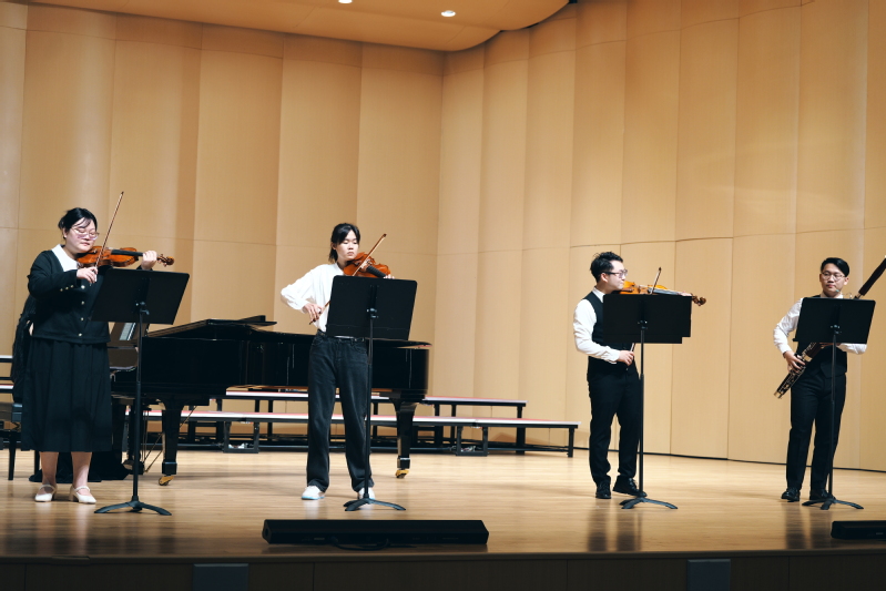 压轴曲目《军港之夜》的改编,凸显音乐会的时代关怀。此次改编将混声合唱转化为弦乐、木管与钢琴的室内乐编制。小提琴(翁铎玲、陈红冰)以清亮音色勾勒海浪的粼粼波光,中提琴(林子钧)与巴松管(陈冠佐)的中低声部交织出军港的深沉底色,周伊诺的钢琴则以琶音模拟潮汐起伏。在中国人民海军成立75周年之际,以器乐语言完成对经典红歌的当代致敬。