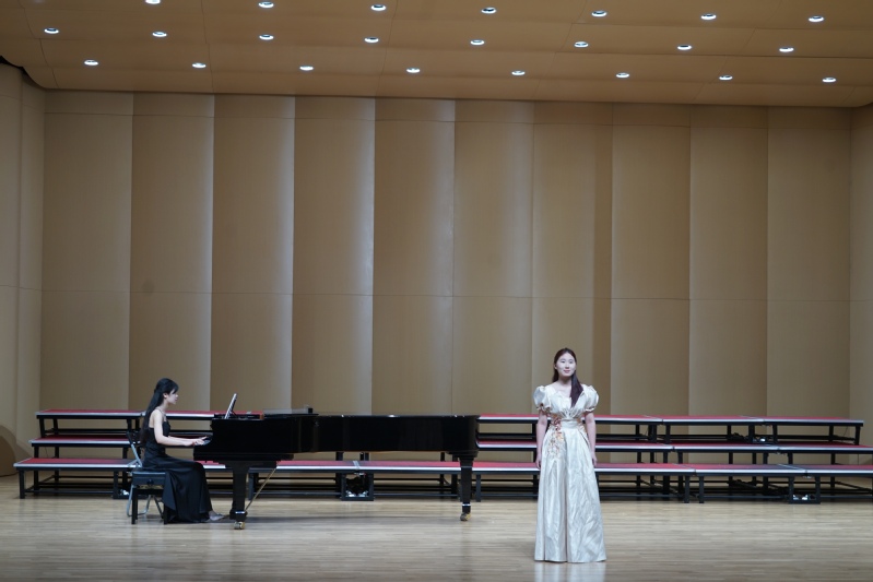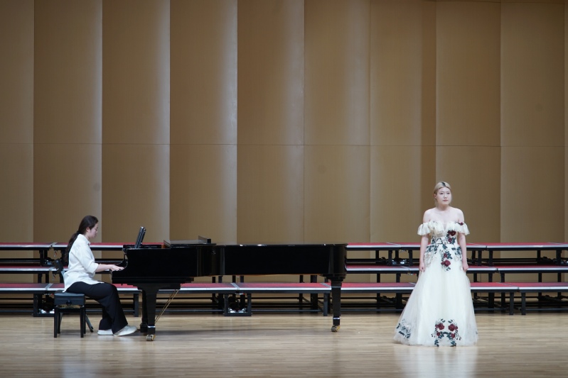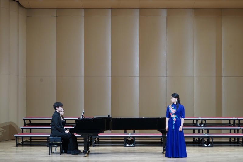 当第一个音符如露珠滑落,朱思汝同学带来的《清流》为我们勾勒出山涧清泉潺潺流动的画卷;陈志凯带来的《我的爱人你可听见》带我们走进那个烽火连天的年代;蔡怡婕用明亮和灵动的歌喉为我们带来的《美丽的阿瓦日古丽》让我们在这热情的旋律中,感受丝绸之路上永远盛开的民族艺术之花;由钟欣带来的《啊,我的虎子哥》将我们的心跳与金子的心跳同频,让我们的呼吸与虎子哥的呼吸共振。