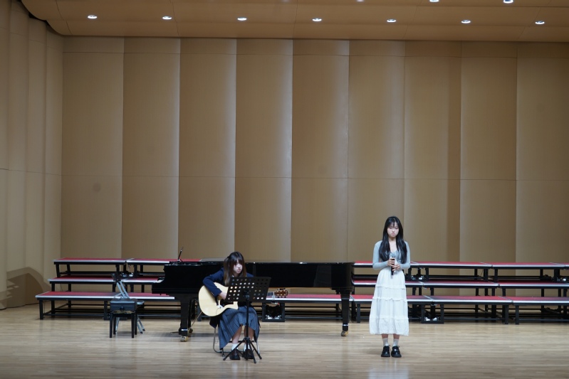 首先,让我们聆听由黄欣潼、李晴予(吉他)带来的《勇气》每一个音符都在诉说着为爱勇敢的故事;由林艾其带来的《同花顺》,让同学们感受到不是所有的选择都能如愿以偿,正是因为遗憾与错过才让青春真实动人;范施琪用温暖的嗓音为带来的《几分之几》抚慰着每一个在成长路上寻找自我的灵魂;最后,由闵亨达带来的《小镇姑娘》用轻快的旋律将我们带回到那个单纯美好的年代,重温青春最本真的模样!
