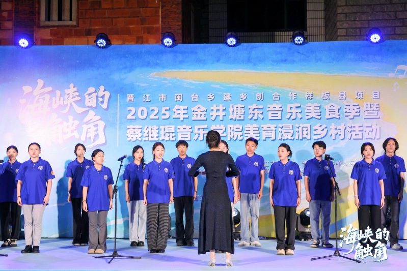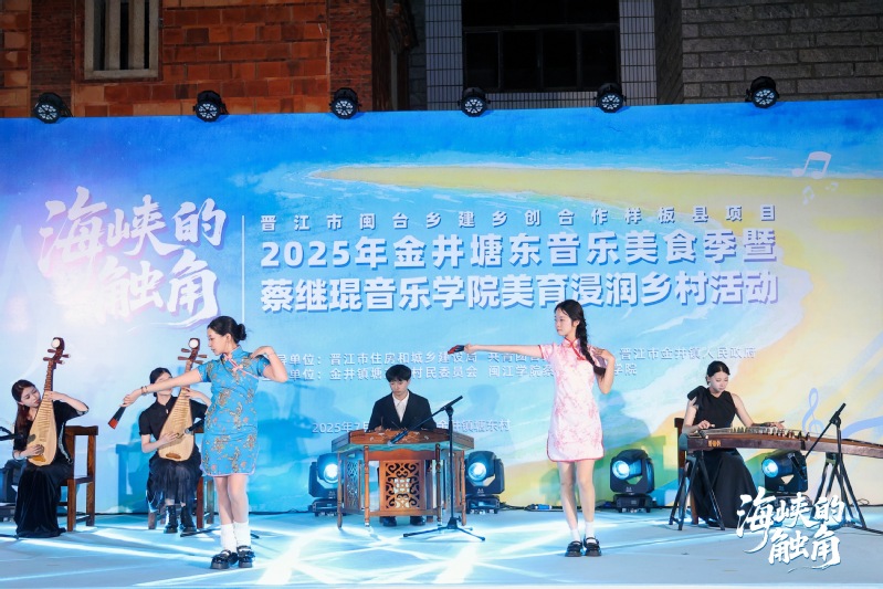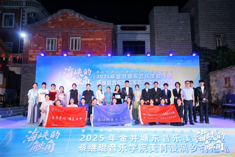 2025年7月4日,音乐公司“乐音寻根,塘东追梦”暑期社会实践队走进泉州晋江市金井镇塘东村,开展晋江市闽台乡建乡创合作样板县项目“海峡的触角”2025年塘东音乐美食季暨威廉希尔体育美育浸润乡村活动。本次演出以“闽台乡建乡创”为契机,以蔡继琨饱含家国情怀的音乐为纽带,以”赋能、培力”为理念核心,积极响应福建省住建厅大力推行的闽台乡建乡创政策号召,助力晋江市闽台乡建乡创合作样板县建设,以艺术为舟,以乡情为桨,在闽南侨乡的月光下,触摸两岸文化的血脉相连。