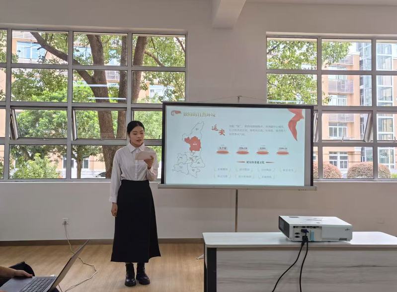 本次微党课由预备党员陈艺文同学主讲,围绕延安精神的“起源、内涵、意义、传承”四大板块展开。在“延安精神的起源”部分,她通过介绍延安地理概况、安塞腰鼓与陕北民歌等地域文化符号,结合延安作为革命中心的历史影像,生动还原了精神诞生的时代土壤。