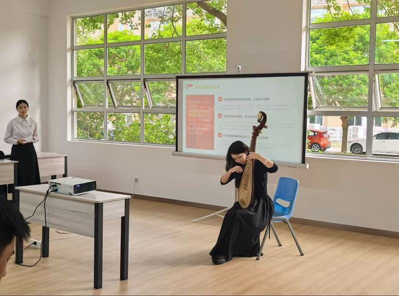 党课尾声,叶善祯同学的琵琶独奏《唱支山歌给党听》缓缓响起。悠扬的琴声里,既有对党的赤诚热爱,也饱含着青年一代对红色精神的接续传承,婉转旋律为本次微党课晕染出温暖而坚定的收尾底色。