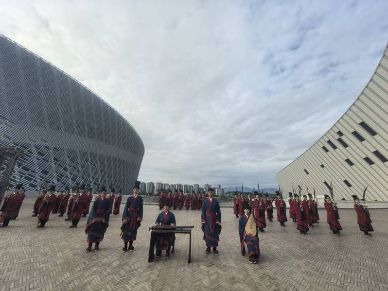 近日,蔡继琨音乐公司佾舞传承示范基地受邀参加《非遗里的中国》·福州篇拍摄录制。本次拍摄由国家级非遗代表性项目《佾舞》代表性传承人李宗霖老师指导,音乐公司周伟博士组织《佾舞理论与实践》、美育通识课《中华佾舞礼乐文化的传承》、第二课堂“金课”《国家级非物质文化遗产“佾舞”》等三门课程中的部分员工66人参加本次拍摄。