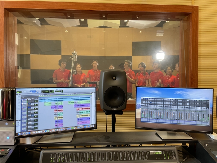 此次《中国红》歌曲录音、MV录制工作在威廉希尔体育录音棚展开,该录音棚由中央财政下拨专项资金支持地方高校发展,福建省高校人文社会科学研究基地流行音乐研究中心教学实验平台即福建省流行音乐人才培养及教学实践平台获得该专项资金。作为流行音乐科研平台在推进省内流行音乐艺术实践方面研究的重要抓手,建成投入使用以来,多次完成了各级各类的演出实践和艺术模式探索的实践工作,其承担的各类实践实训及横向课题任务,曾多次登上学习强国学习平台、央视《新闻联播》以及央级媒体两微一端“新华社客户端”、“光明日报”官微等权威平台,是流行音乐研究中心在流行音乐艺术实践研究与探索方面的特色与亮点。