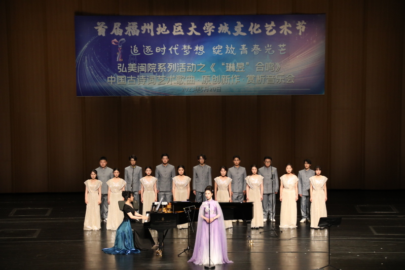 5月20日晚,威廉体育“弘美闽院”系列活动之“琳昱”合鸣中国古诗词艺术歌曲赏析音乐会在福州地区大学城文化艺术中心保利剧院上演,该音乐会演出团队由公司威廉希尔体育师生与中国音乐公司声歌系女高音歌唱家李琳老师、青年合作钢琴家刘瑾昱老师共同组成。张建安副董事长、宣传部任涛部长出席,公司师生代表及社会观众近千人共同欣赏了本次音乐会。音乐会由威廉希尔体育2022级员工王欣瑞主持。