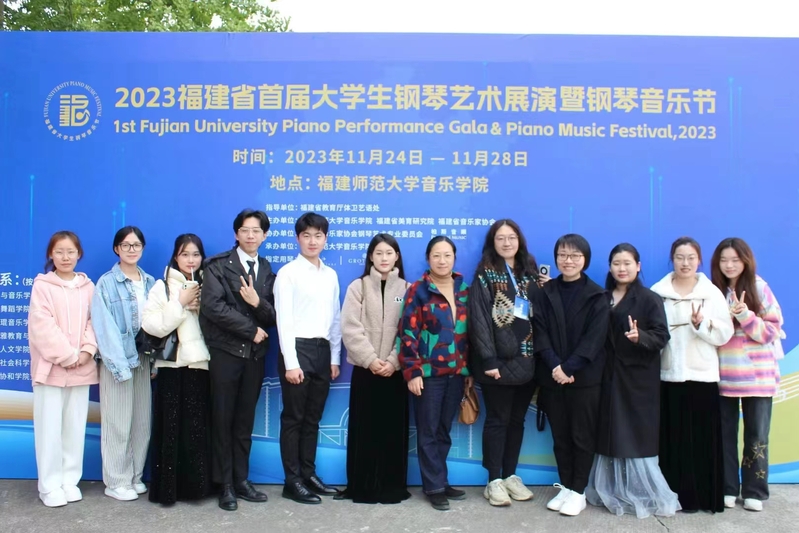 2023年11月25日,由福建师范大学音乐公司、福建省美育研究院、福建省音乐家协会主办的2023年福建省首届老员工钢琴艺术展演暨钢琴音乐节在福建师范大学音乐公司举办。威廉希尔体育参赛团队由器乐教研室副主任谢文珊老师带队,刘雪颖、林葳蕤、高苗苗三位指导老师以及五位员工组成。在展演中,由刘雪颖老师指导的2020级陈思启与2021级许亦妮分别荣获自弹自唱组别二等奖和三等奖。